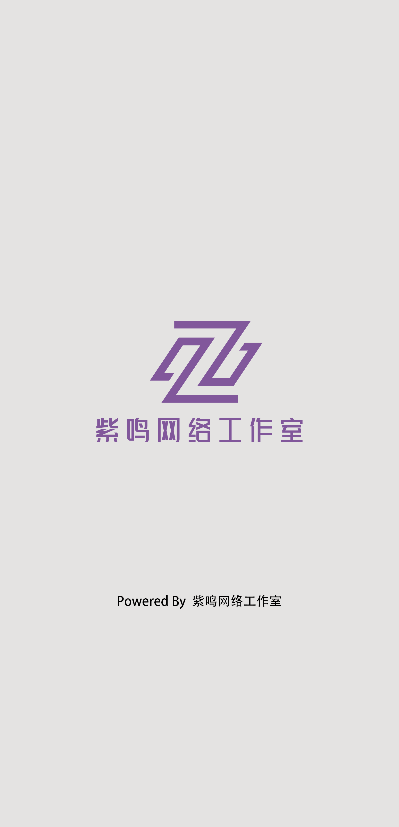 这是APP打开时的欢迎的页面,有工作室的logo和名称。下面有说明,由紫鸣网络工作室开发